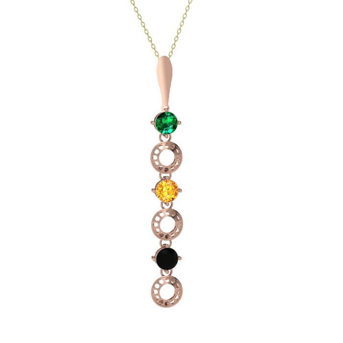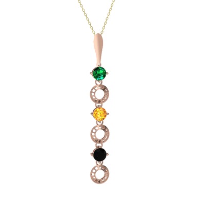Yeşil kuvars, sitrin ve siyah zirkon 8 ayar rose altın kolye (40 cm gümüş rolo zincir)