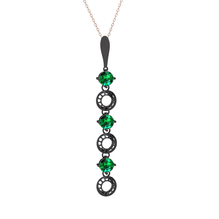 Yeşil kuvars 925 ayar siyah rodyum kaplama gümüş kolye (40 cm rose altın rolo zincir)