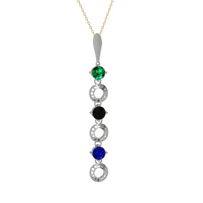 Yeşil kuvars, siyah zirkon ve lab safir 925 ayar gümüş kolye (40 cm gümüş rolo zincir)
