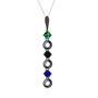 Yeşil kuvars, siyah zirkon ve lab safir 925 ayar siyah rodyum kaplama gümüş kolye (40 cm beyaz altın rolo zincir)