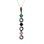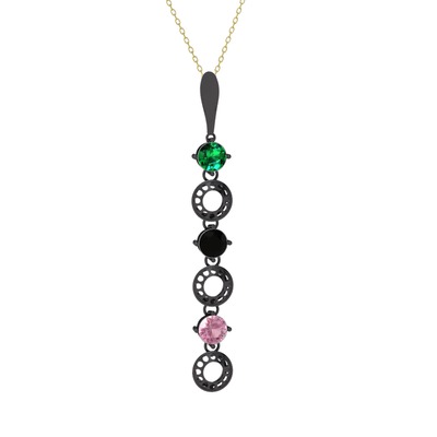 Yeşil kuvars, siyah zirkon ve pembe kuvars 925 ayar siyah rodyum kaplama gümüş kolye (40 cm gümüş rolo zincir)