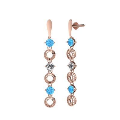 Akuamarin ve beyaz zirkon 14 ayar rose altın küpe