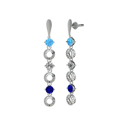 Akuamarin, beyaz zirkon ve lab safir 925 ayar gümüş küpe