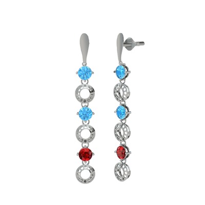Akuamarin ve garnet 8 ayar beyaz altın küpe