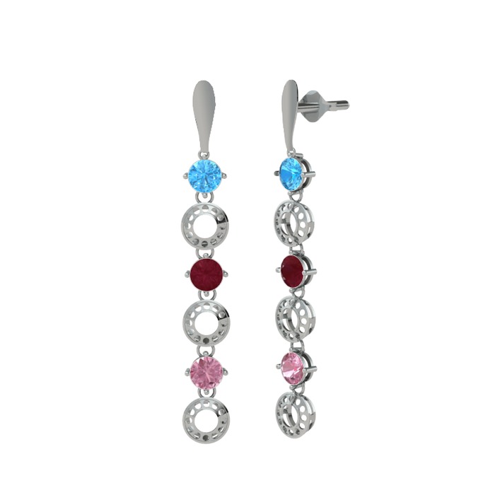 Akuamarin, kök yakut ve pembe kuvars 925 ayar gümüş küpe