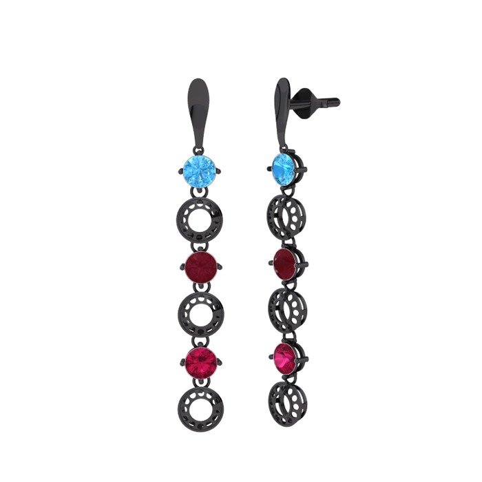 Akuamarin, kök yakut ve rodolit garnet 925 ayar siyah rodyum kaplama gümüş küpe