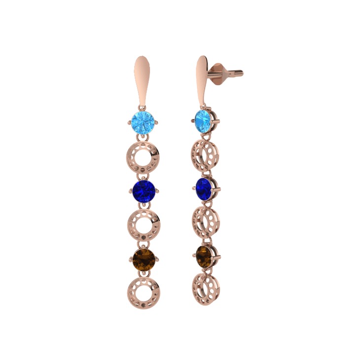 Akuamarin, lab safir ve dumanlı kuvars 18 ayar rose altın küpe