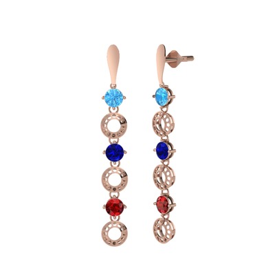 Akuamarin, lab safir ve garnet 14 ayar rose altın küpe