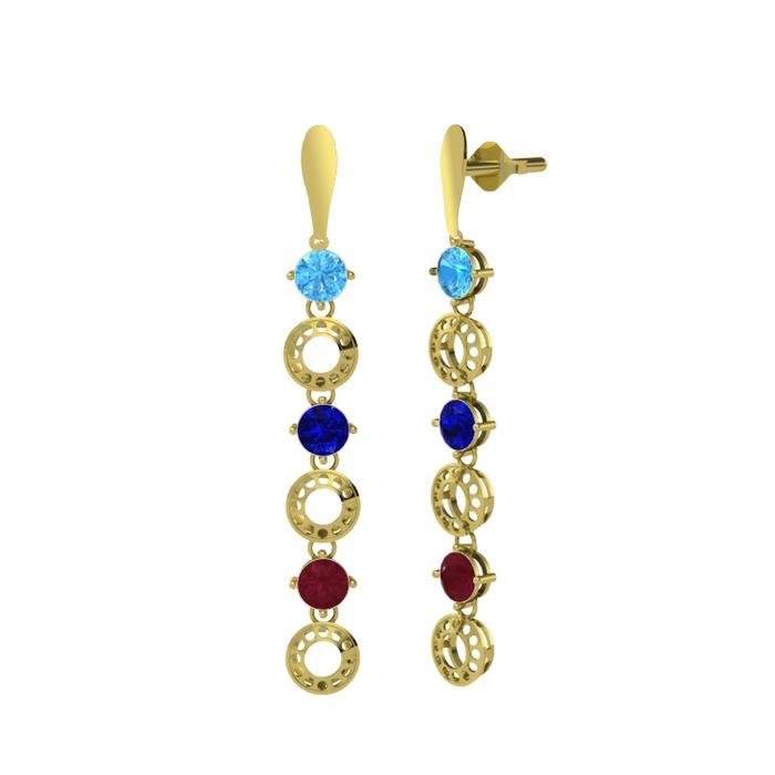 Akuamarin, lab safir ve kök yakut 18 ayar altın küpe