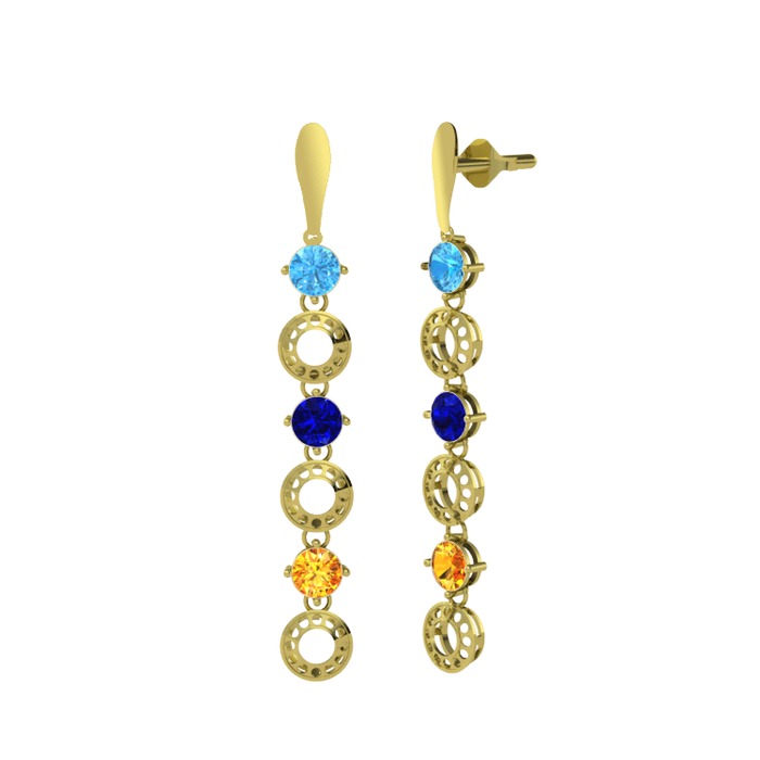 Akuamarin, lab safir ve sitrin 925 ayar altın kaplama gümüş küpe