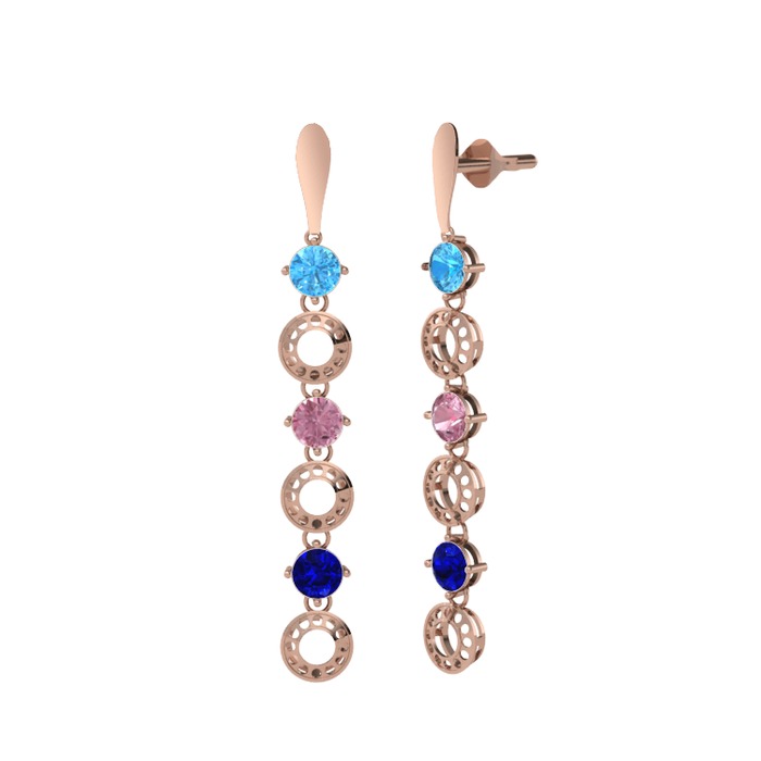 Akuamarin, pembe kuvars ve lab safir 14 ayar rose altın küpe