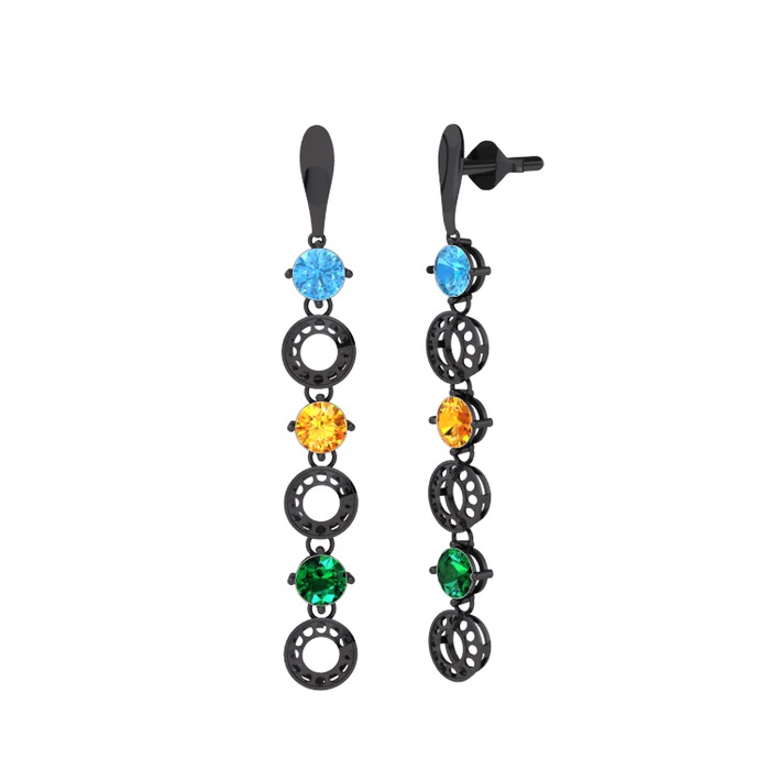 Akuamarin, sitrin ve yeşil kuvars 925 ayar siyah rodyum kaplama gümüş küpe