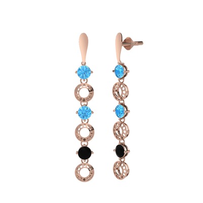 Akuamarin ve siyah zirkon 925 ayar rose altın kaplama gümüş küpe