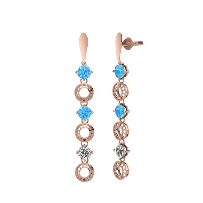 Akuamarin ve swarovski 18 ayar rose altın küpe