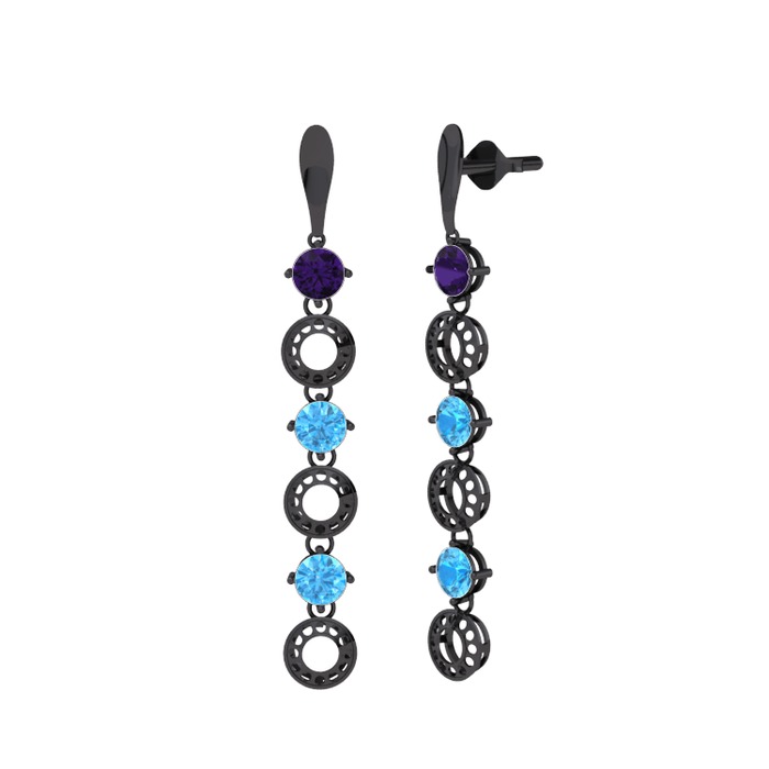 Ametist ve akuamarin 925 ayar siyah rodyum kaplama gümüş küpe