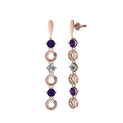 Ametist ve beyaz zirkon 925 ayar rose altın kaplama gümüş küpe