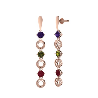 Ametist, peridot ve kök yakut 8 ayar rose altın küpe