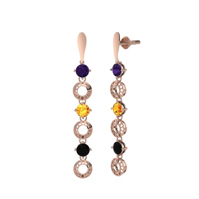 Ametist, sitrin ve siyah zirkon 18 ayar rose altın küpe
