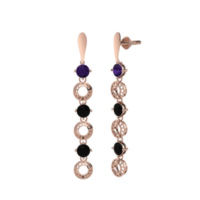 Ametist ve siyah zirkon 18 ayar rose altın küpe