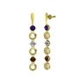 Ametist, swarovski ve dumanlı kuvars 8 ayar altın küpe