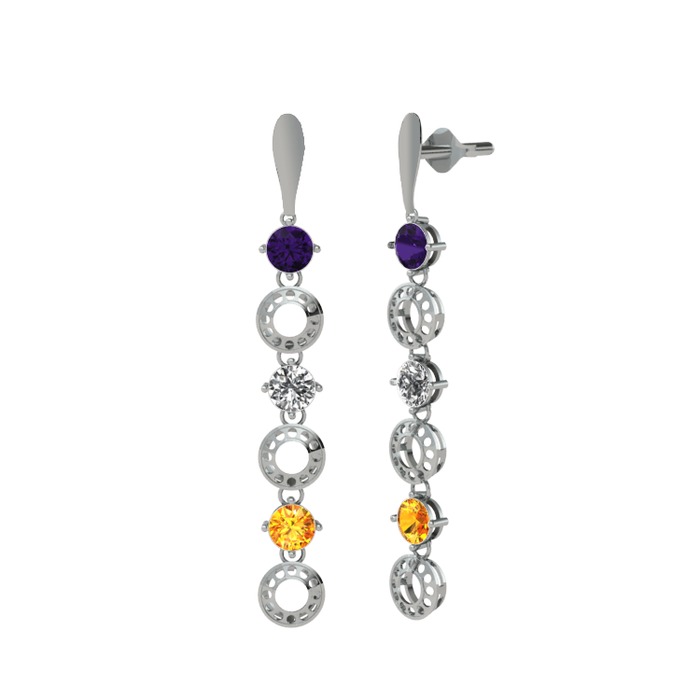 Ametist, swarovski ve sitrin 8 ayar beyaz altın küpe