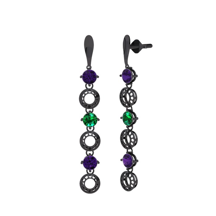 Ametist ve yeşil kuvars 925 ayar siyah rodyum kaplama gümüş küpe