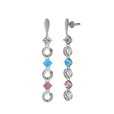 Beyaz zirkon, akuamarin ve pembe kuvars 14 ayar beyaz altın küpe