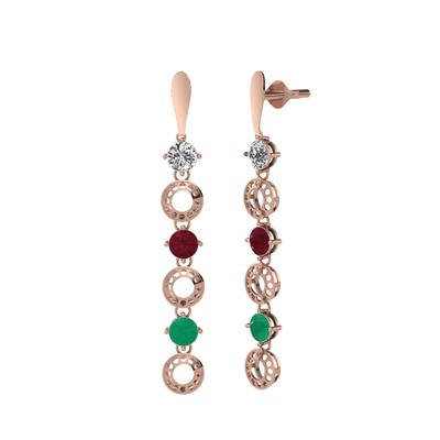 Beyaz zirkon, kök yakut ve kök zümrüt 18 ayar rose altın küpe