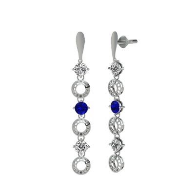 Beyaz zirkon ve lab safir 14 ayar beyaz altın küpe