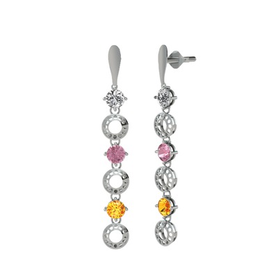 Beyaz zirkon, pembe kuvars ve sitrin 14 ayar beyaz altın küpe