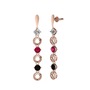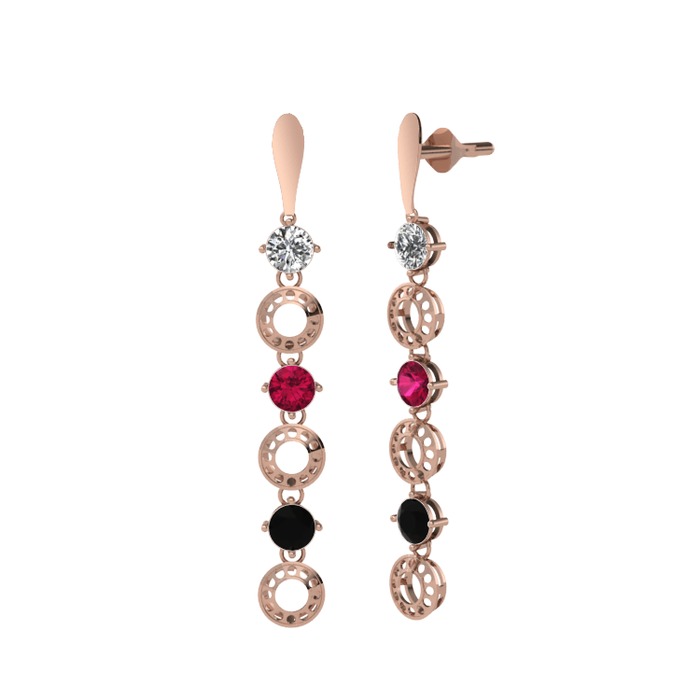 Beyaz zirkon, rodolit garnet ve siyah zirkon 18 ayar rose altın küpe
