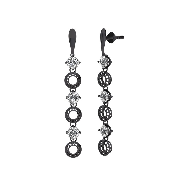 Beyaz zirkon 925 ayar siyah rodyum kaplama gümüş küpe