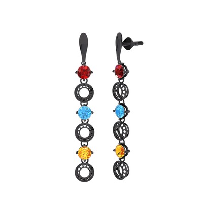 Garnet, akuamarin ve sitrin 925 ayar siyah rodyum kaplama gümüş küpe