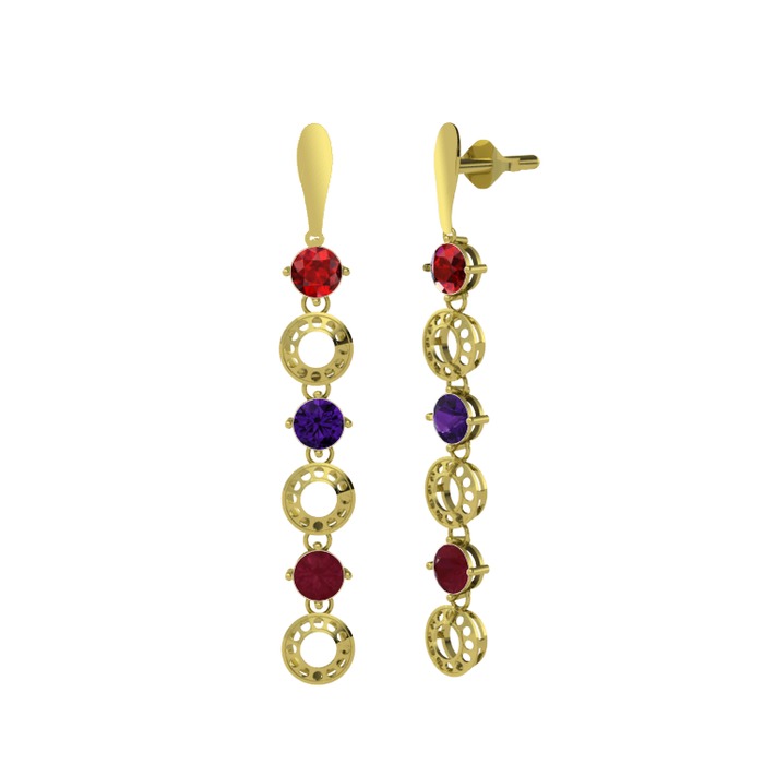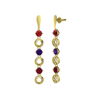 Garnet, ametist ve kök yakut 8 ayar altın küpe