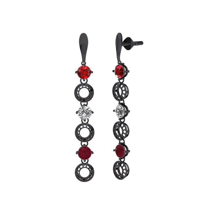 Garnet, beyaz zirkon ve kök yakut 925 ayar siyah rodyum kaplama gümüş küpe