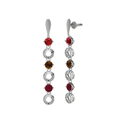 Garnet, dumanlı kuvars ve kök yakut 8 ayar beyaz altın küpe