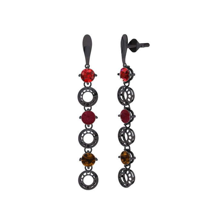Garnet, kök yakut ve dumanlı kuvars 925 ayar siyah rodyum kaplama gümüş küpe