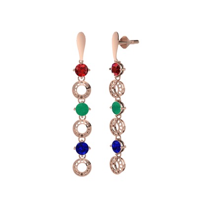 Garnet, kök zümrüt ve lab safir 14 ayar rose altın küpe