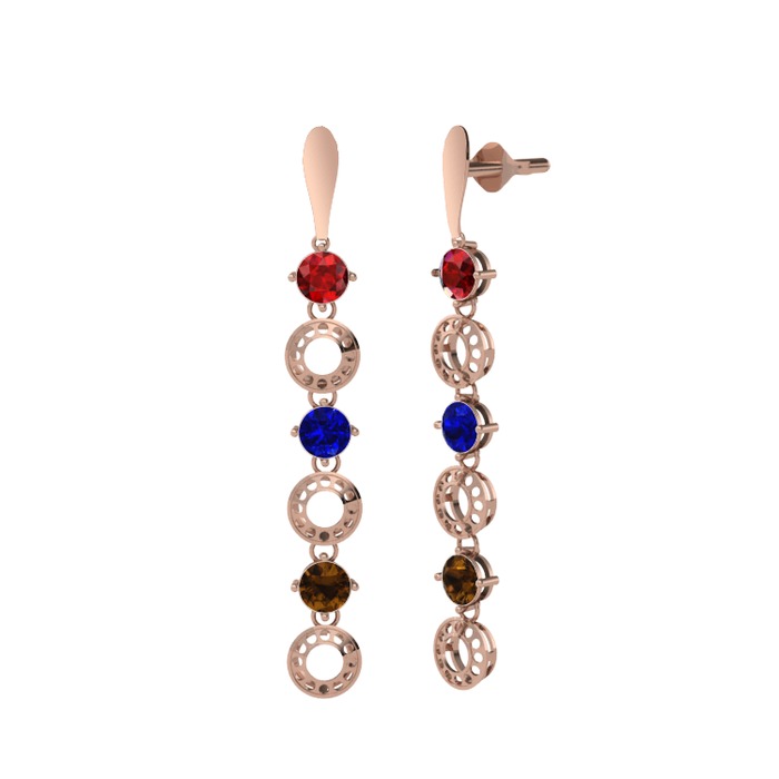 Garnet, lab safir ve dumanlı kuvars 8 ayar rose altın küpe