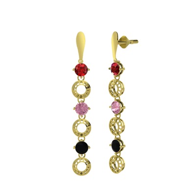 Garnet, pembe kuvars ve siyah zirkon 925 ayar altın kaplama gümüş küpe