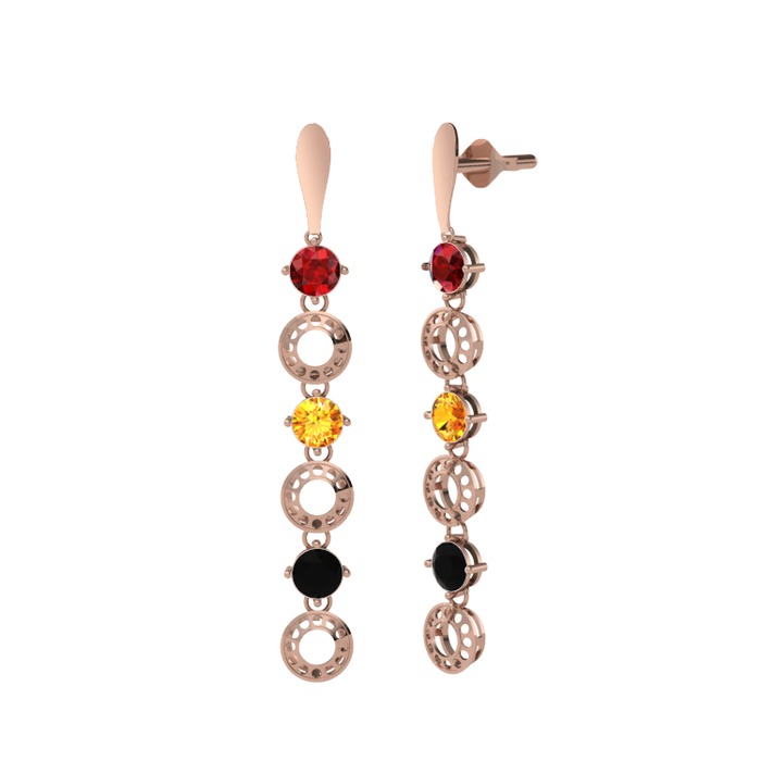 Garnet, sitrin ve siyah zirkon 8 ayar rose altın küpe