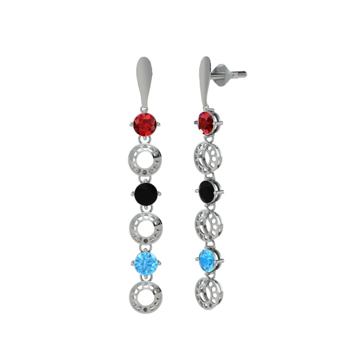 Garnet, siyah zirkon ve akuamarin 14 ayar beyaz altın küpe