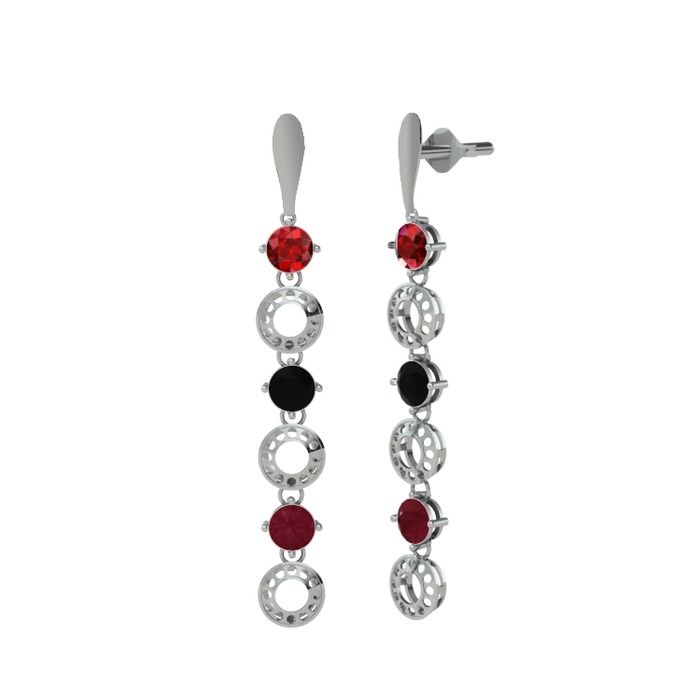 Garnet, siyah zirkon ve kök yakut 8 ayar beyaz altın küpe