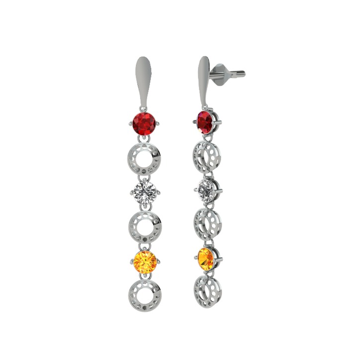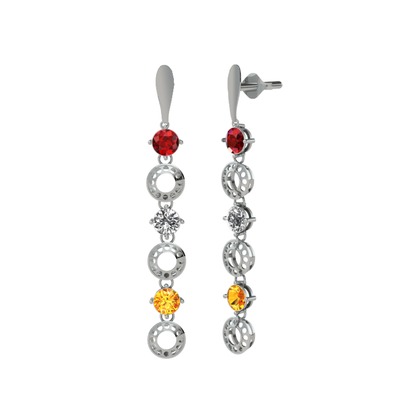 Garnet, swarovski ve sitrin 14 ayar beyaz altın küpe