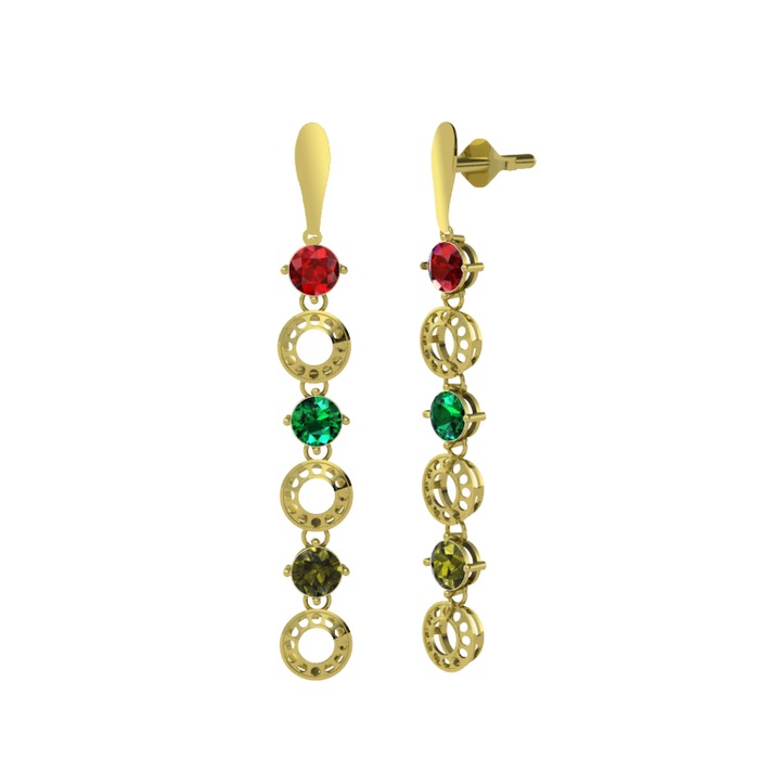 Garnet, yeşil kuvars ve peridot 18 ayar altın küpe