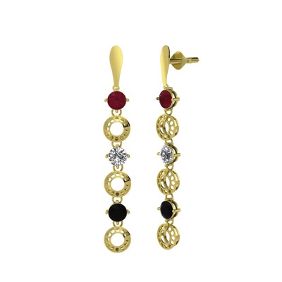 Kök yakut, beyaz zirkon ve siyah zirkon 925 ayar altın kaplama gümüş küpe