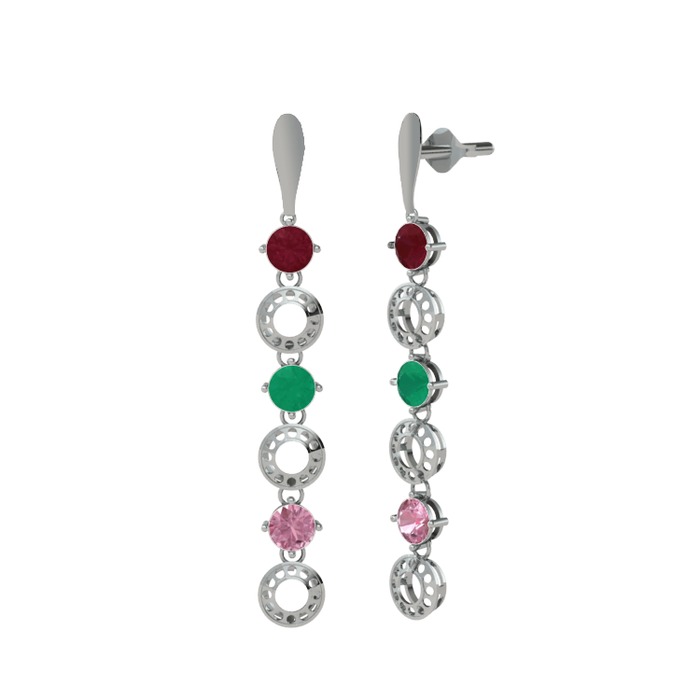 Kök yakut, kök zümrüt ve pembe kuvars 925 ayar gümüş küpe