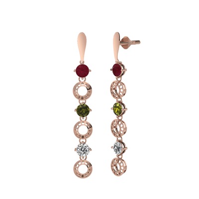 Kök yakut, peridot ve swarovski 8 ayar rose altın küpe