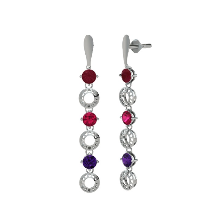 Kök yakut, rodolit garnet ve ametist 18 ayar beyaz altın küpe