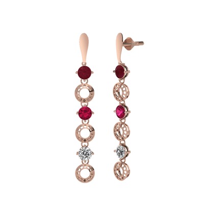 Kök yakut, rodolit garnet ve swarovski 18 ayar rose altın küpe